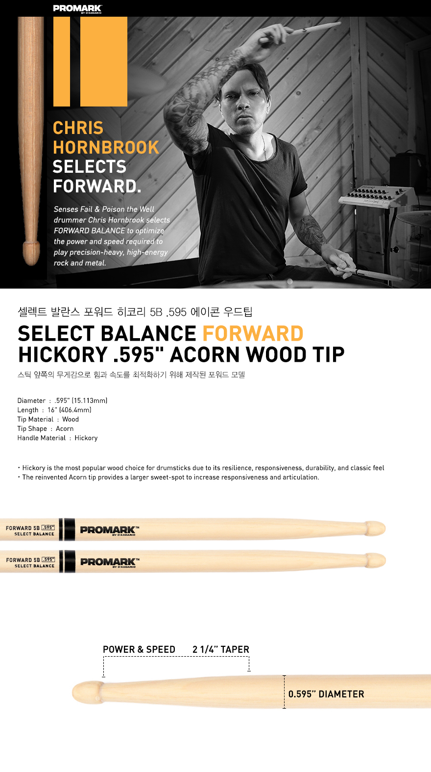Select Balance Forward Hickory 5B .595" Acorn Wood Tip / FBH595AW > 타악기